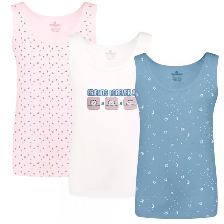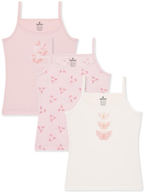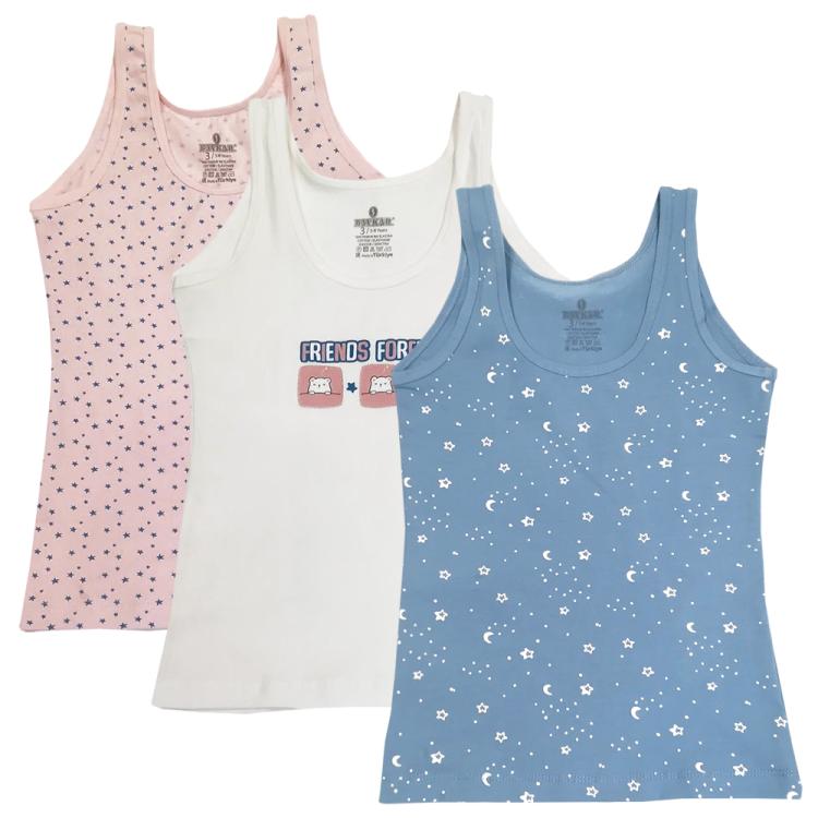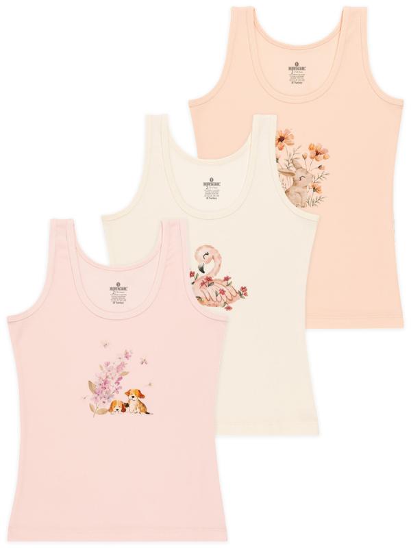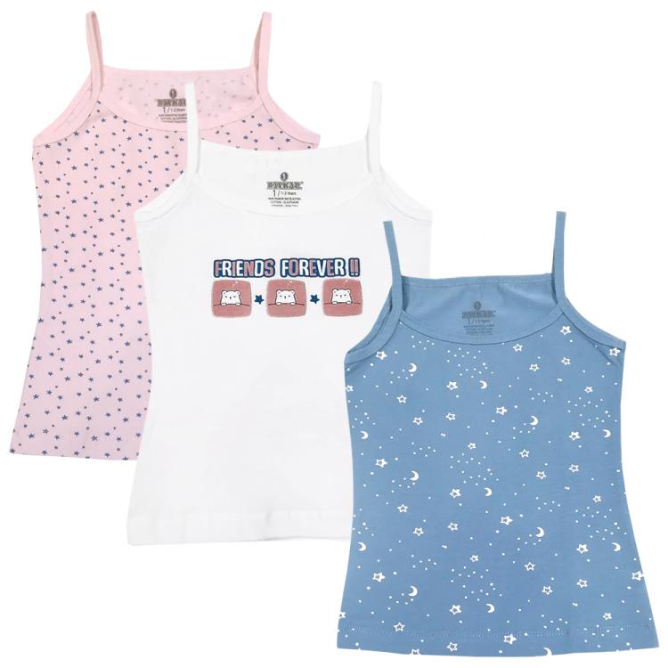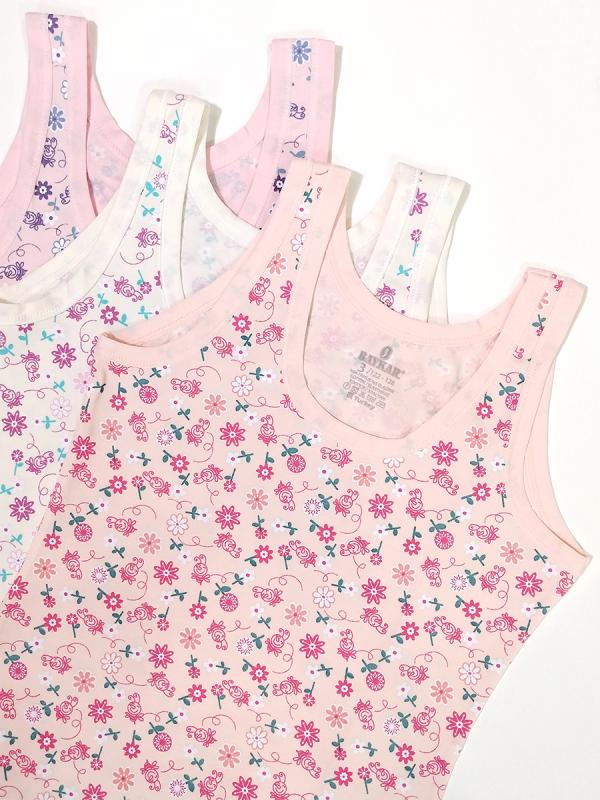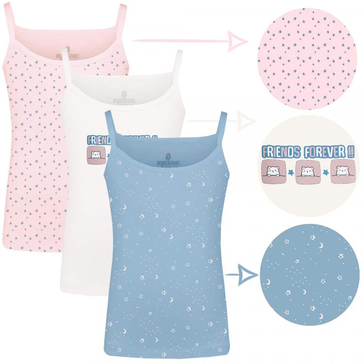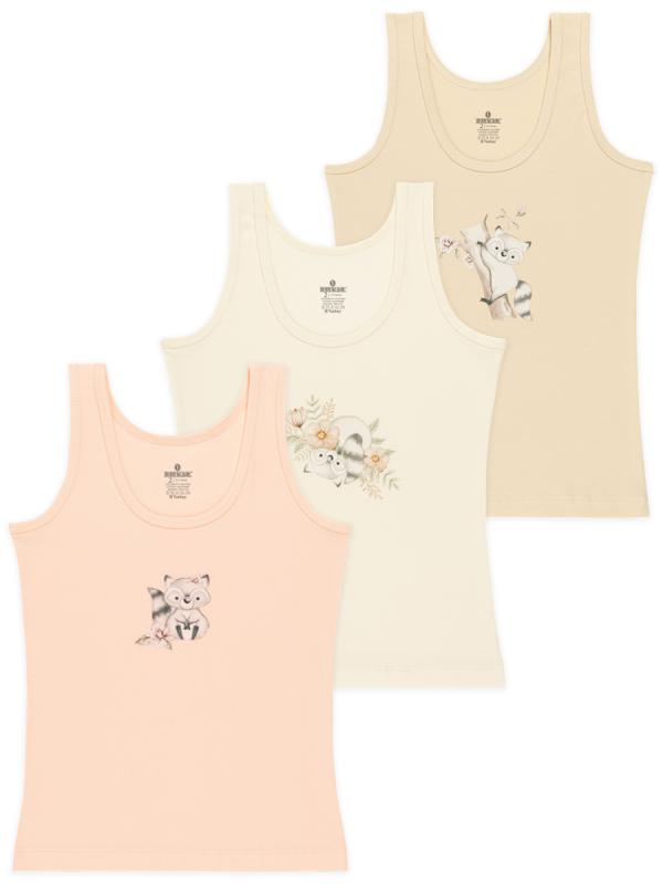 . Полуприлегающий силуэт. Широкие бретели отделаны эластичным трикотажным кантом. Размер 1 (98-104), длина- 41 см, обхват груди- 50 см. Размер 2 (110-116), длина- 43 см, обхват груди- 54 см. Размер 3 (122-128), длина- 46 см, обхват груди- 58 см. Размер 4 (134-140), длина- 49 см, обхват груди- 64 см. Размер 5 (146-152), длина- 51 см, обхват груди- 68 см. Замеры выборочные, могут незначительно отличаться. ВНИМАНИЕ! Товар продается по 3 шт. одного размера. Расцветка может прийти любая, из представленных на фото (цвета могут дублироваться).