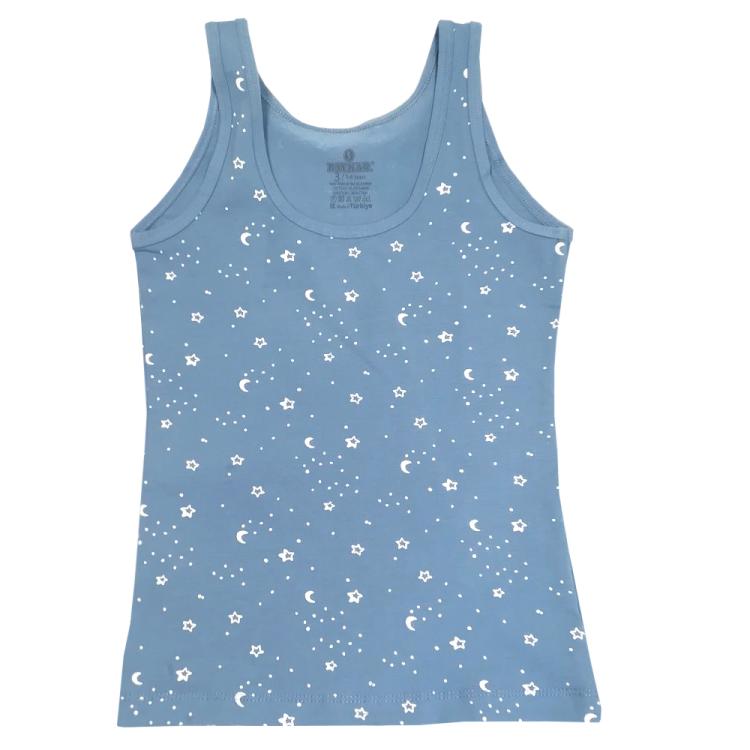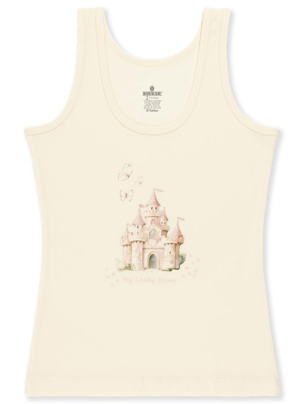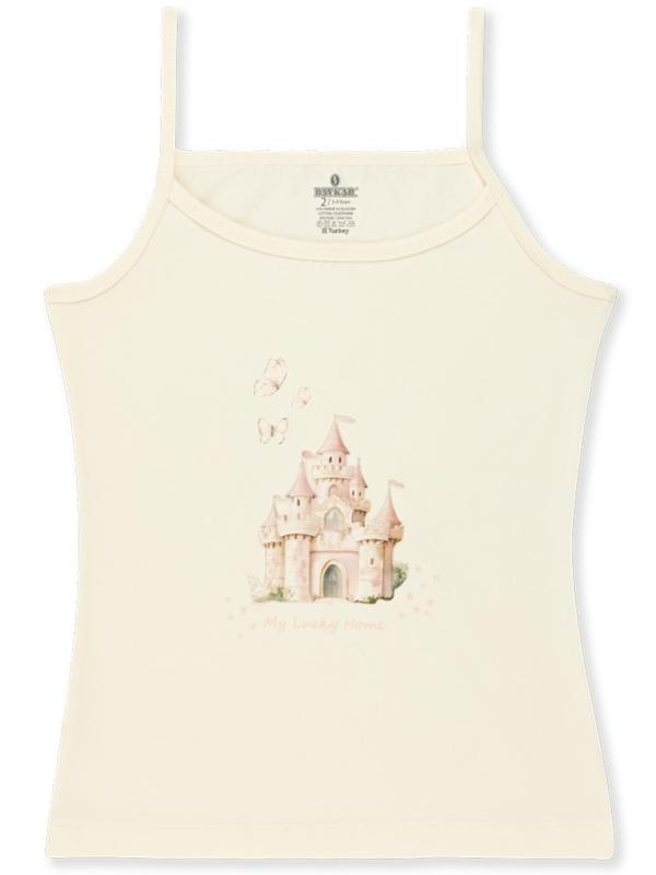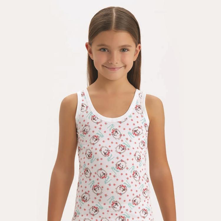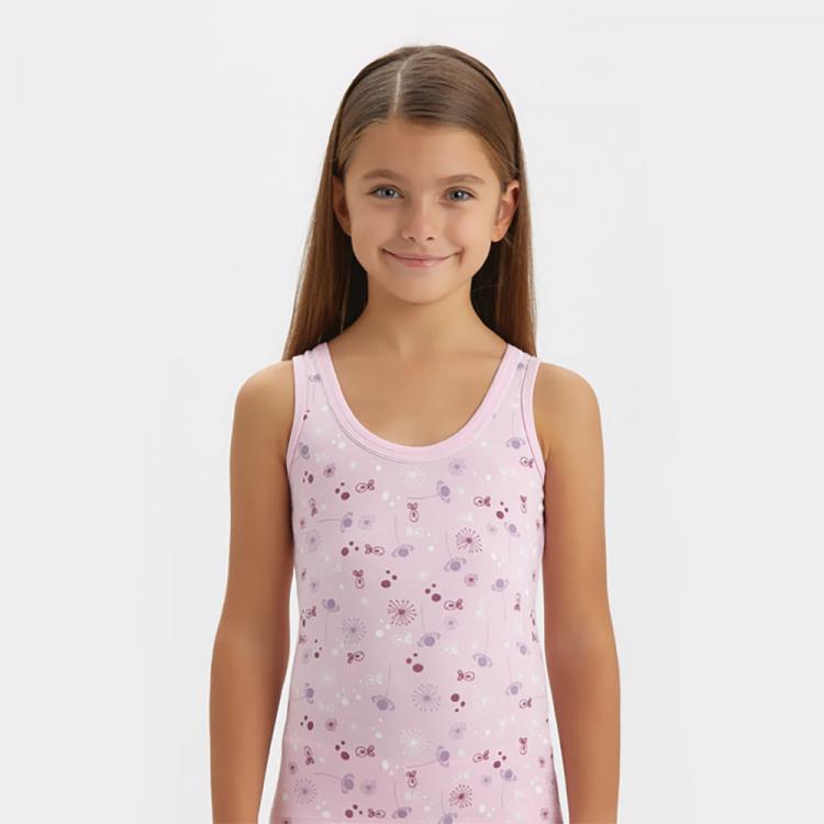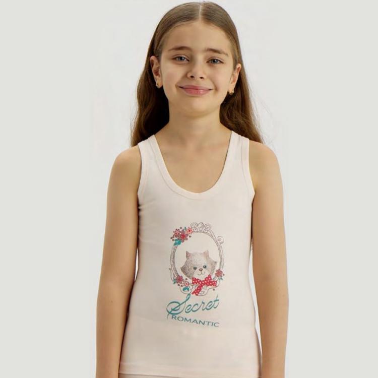 Описание и замеры Майка для девочки на широких бретелях с принтом "