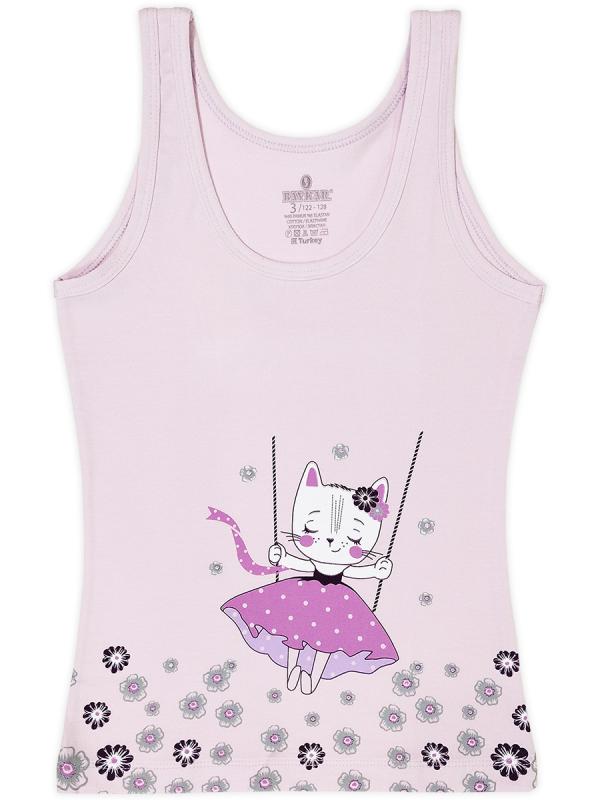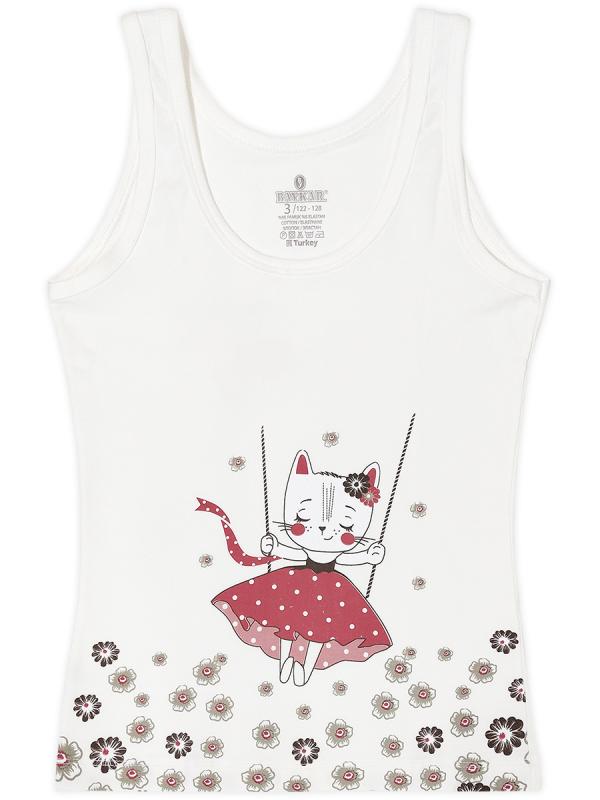 Описание и замеры Майка для девочки из эластичного х-б трикотажа, с принтом "