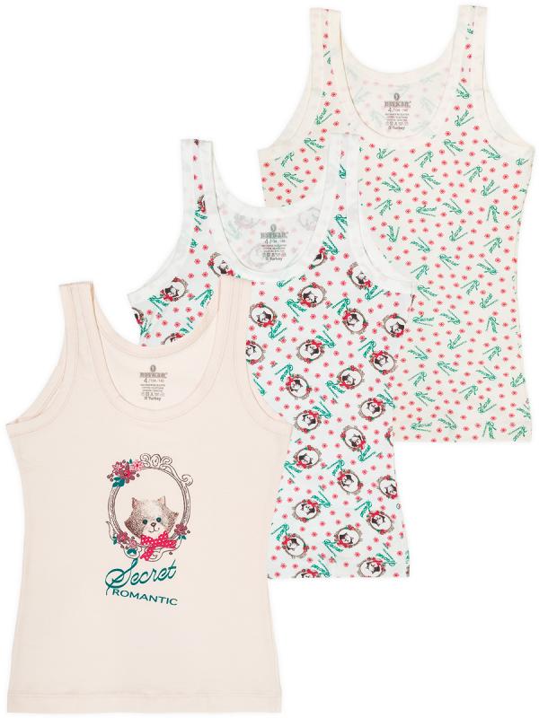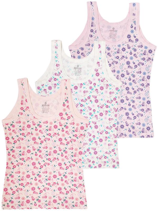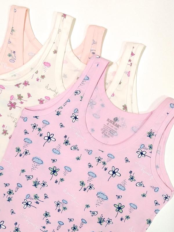 . Полуприлегающий силуэт. Тонкие бретели из эластичного трикотажа. ВНИМАНИЕ! Товар продается по 3 шт. одного размера. Расцветка может прийти любая, из представленных на фото (цвета могут дублироваться). Размер 1 (98-104), длина- 39 см, обхват груди- 50 см. Размер 2 (110-116), длина- 41 см, обхват груди- 54 см. Размер 3 (122-128), длина- 44 см, обхват груди- 58 см. Размер 4 (134-140), длина- 47 см, обхват груди- 62 см. Размер 5 (146-152), длина- 50 см, обхват груди- 66 см Замеры выборочные, могут незначительно отличаться.