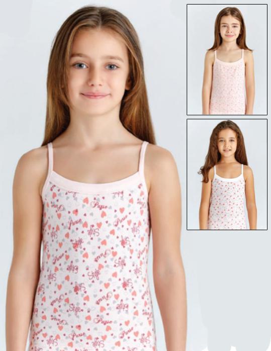 . Полуприлегающий силуэт. Широкие бретели отделаны эластичным трикотажным кантом. ВНИМАНИЕ! Расцветка может прийти любая, из представленных на фото. В упаковке 2 шт. одного размера. Размер 0 (86-92), длина- 38 см, обхват груди- 48 см. Размер 1 (98-104), длина- 40 см, обхват груди- 50 см. Размер 2 (110-116), длина- 44 см, обхват груди- 53 см. Размер 3 (122-128), длина- 46 см, обхват груди- 57 см. Размер 4 (134-140), длина- 48 см, обхват груди- 62 см. Размер 5 (146-152), длина- 52 см, обхват груди- 66 см. Размер 6 (158-164), длина- 54 см, обхват груди- 70 см. Размер 7 (170-176), длина- 57 см, обхват груди- 74 см. Замеры выборочные, могут незначительно отличаться.