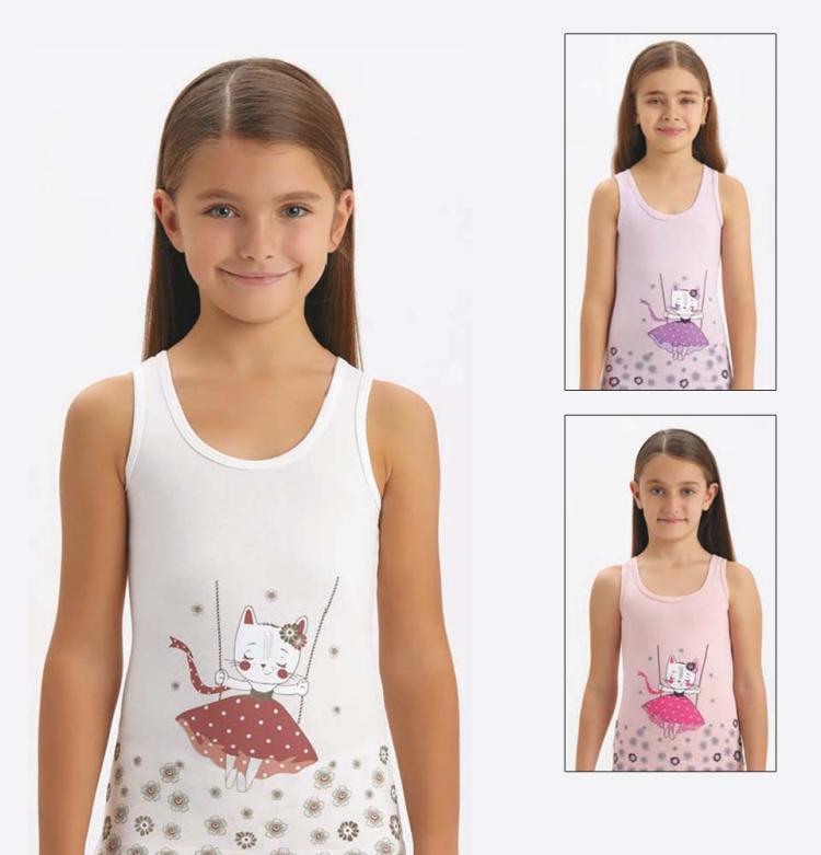 . Полуприлегающий силуэт. Тонкие бретели. Вырез, бретели, проймы отделаны эластичным трикотажным кантом. Размер 0 (86-92), длина- 36 см, обхват груди- 47 см. Размер 1 (98-104), длина- 40 см, обхват груди- 52 см. Размер 2 (110-116), длина- 43 см, обхват груди- 56 см. Размер 3 (122-128): длина- 46 см, обхват груди- 58 см. Размер 4 (134-140): длина- 49 см, обхват груди- 63 см. Размер 5 (146-152): длина- 50 см, обхват груди- 66 см. Размер 6 (158-164): длина- 55 см, обхват груди- 72 см. Размер 7 (170-176): длина- 58 см, обхват груди- 74 см. Замеры выборочные, могут незначительно отличаться. ВНИМАНИЕ: цвет может прийти любой из представленных на фото. В упаковке 2 шт. одного размера.