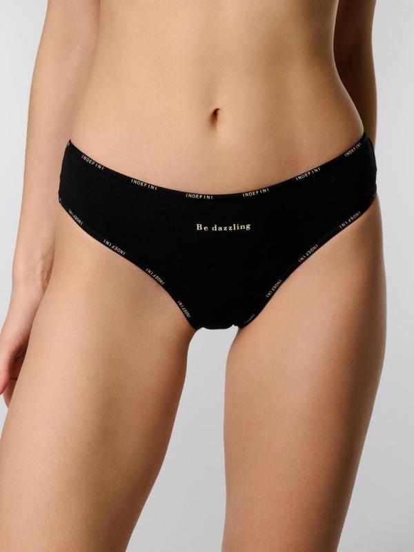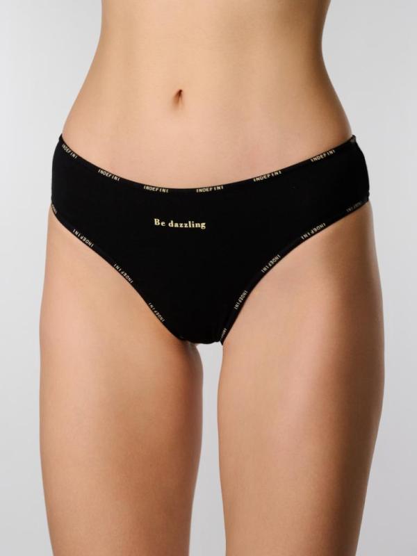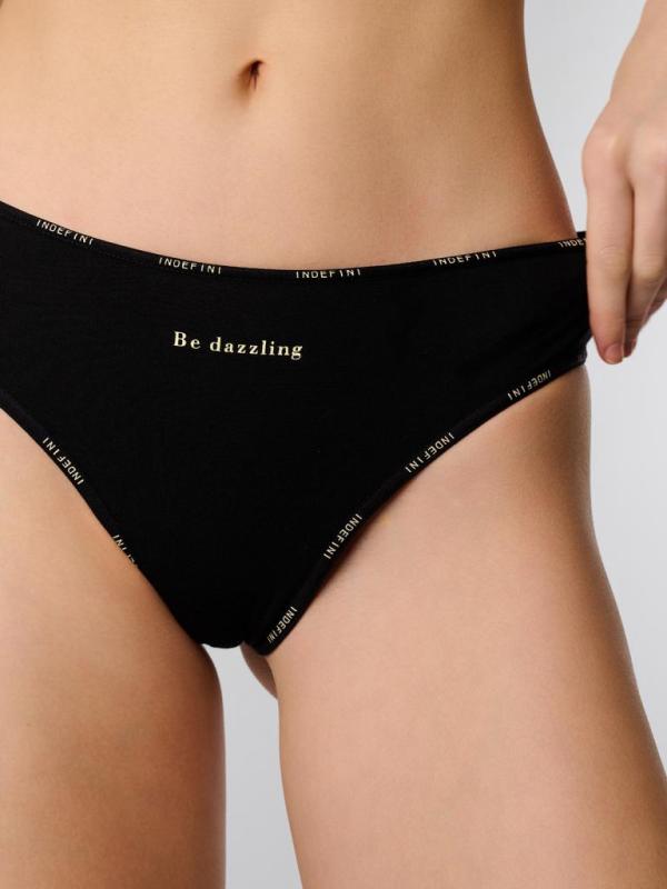 Мягкие женские трусы-слипы из натурального хлопка с эластаном обеспечивают комфорт на каждый день. Эластичный пояс окантован фирменным логотипом, фиксирует посадку и не натирает. Лаконичный черный дизайн с печатью Be dazzling подходит под любой образ и не просвечивает под одеждой. Крой визуально подчеркивает линию бедер. Состав : 95% хлопок 5% эластан