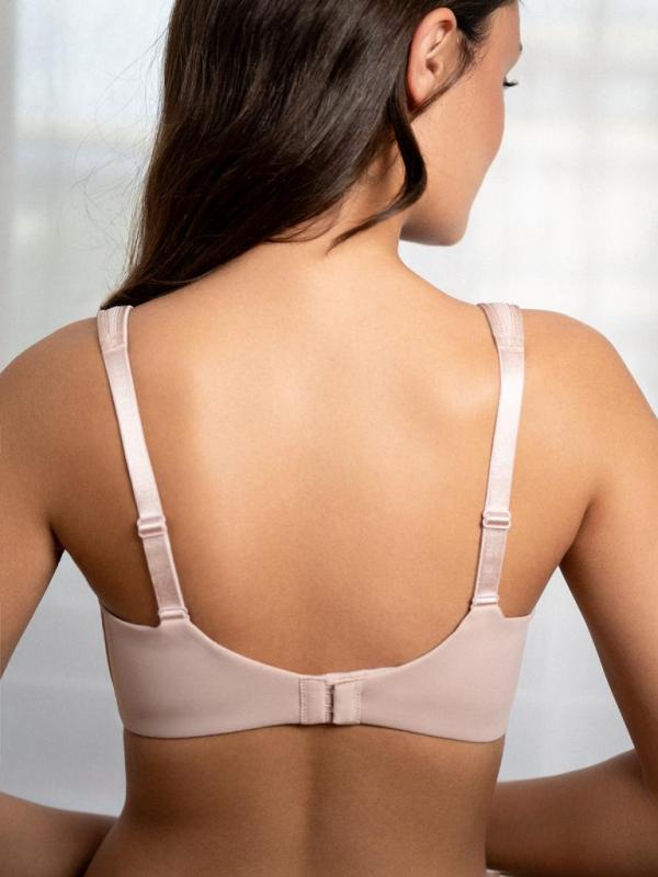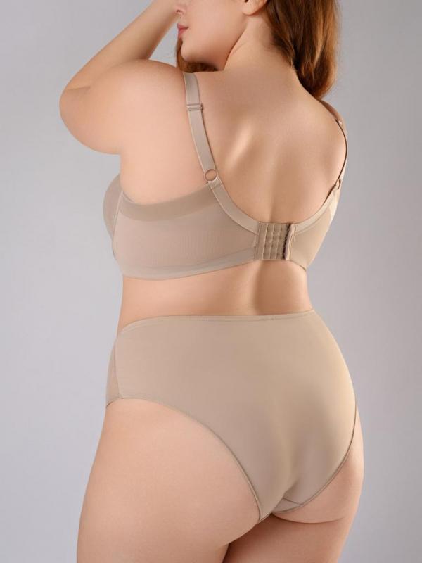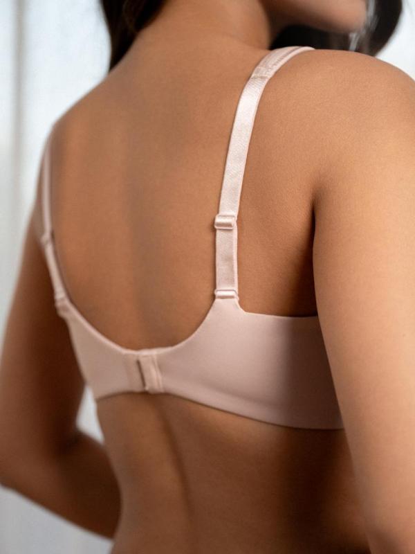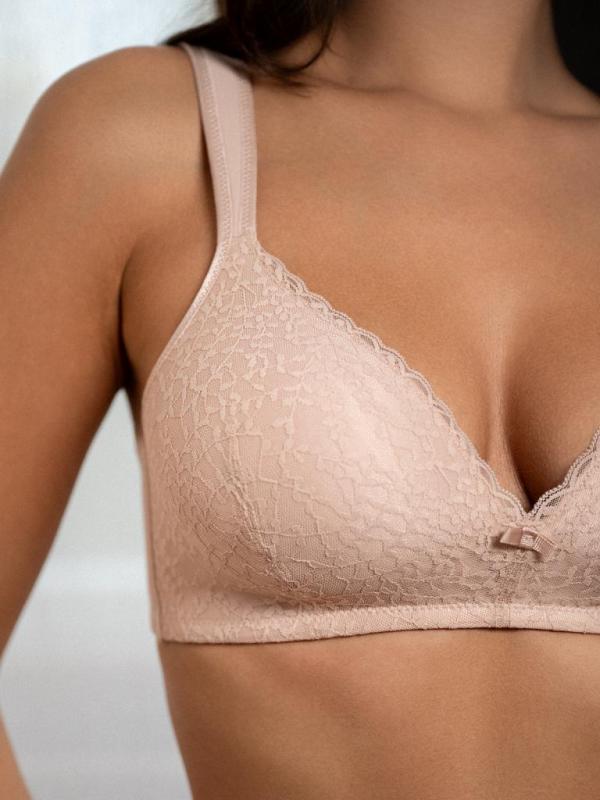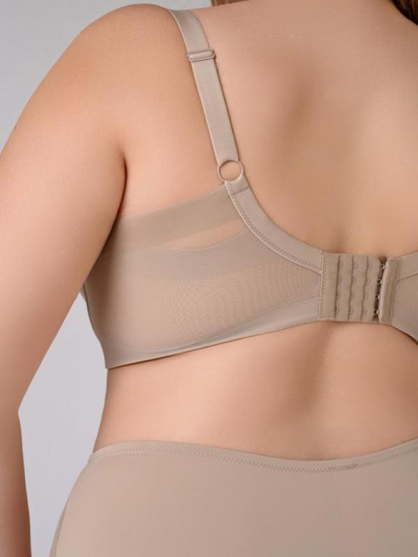 Этот бюстгальтер бежевого цвета станет незаменимым элементом гардероба. Мягкие и удобные чашечки без косточек поддерживают грудь. Идеальная посадка настраивается за счет широких бретелей с регулируемой длиной. В составе модели полиэстер и эластан. Это легкий и дышащий материал, не вызывающий раздражения кожи. Модель подходит под любую одежду.