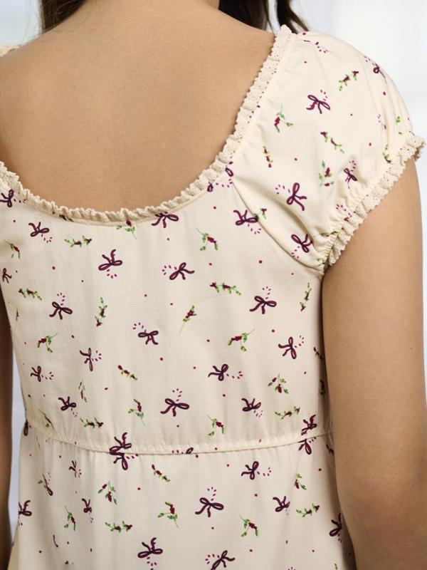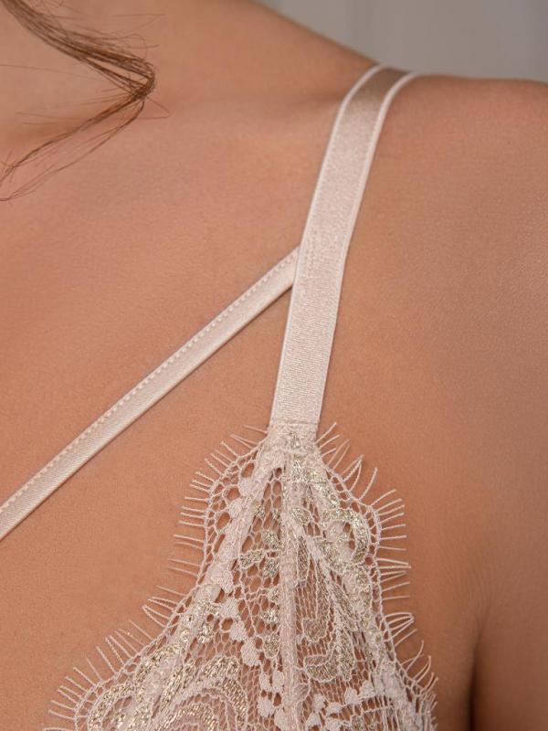 Эта пижама состоит из топа и шорт. Выполнена в светлом бежевом оттенке с нежным принтом. Модель подчеркивает достоинства фигуры и добавляет образу женственности. Всё благодаря продуманным деталям: V-образный вырез