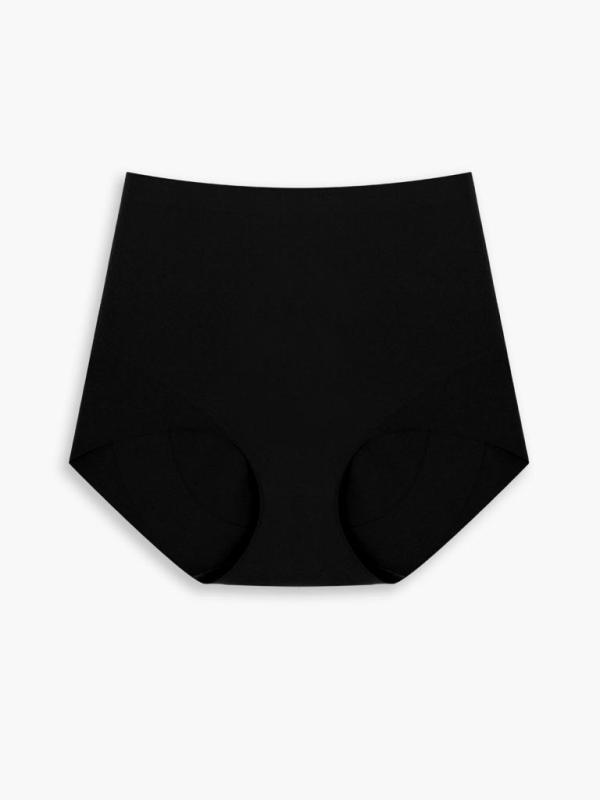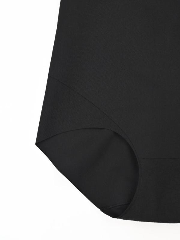 Бесшовное корректирующее белье в базовом черном оттенке. Модель хорошо утягивает и не сковывает движение. Особенности — не сползает, подчеркивает линию талии