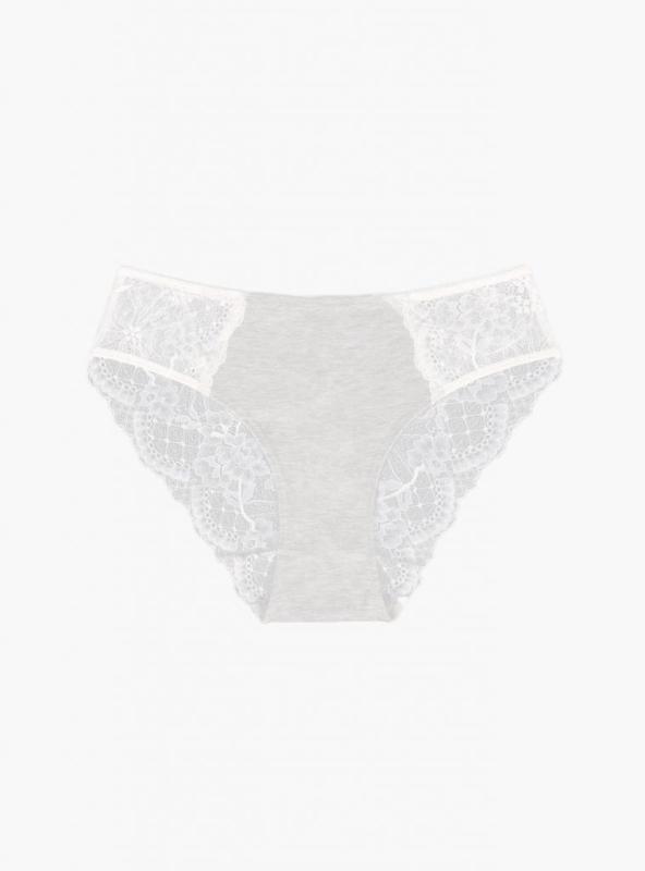 Женские трусы со средней посадкой сшиты из бамбуковой ткани. Передняя часть выполнена из гладкого трикотажа, задняя — из тонкого кружева с цветочным рисунком. Крой закрывает линию бедра и сидит ровно за счет эластичного пояса. Материал мягкий и гладкий и подходит для ежедневной носки. Состав : 95% бамбук 5% эластан