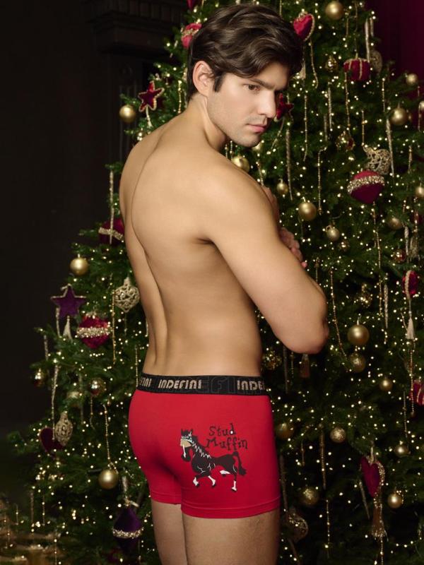 Ярко-красные мужские трусы-боксеры изготовлены из 100% хлопка. Белье не прилипает к телу, отлично пропускает воздух и подходит даже для чувствительной кожи, не вызывая раздражения. Передняя часть белья однотонная. Задняя часть украшена забавным принтом с изображением лошади — это тематическая отсылка к предстоящему году Лошади.