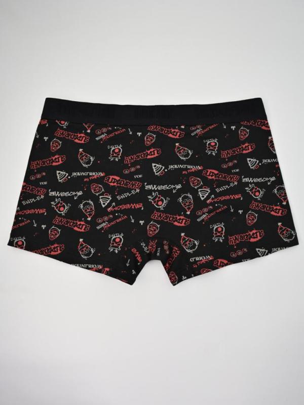 .Мужские трусы-боксеры с ярким принтом. Изделие выполнено в классическом крое с комфортной посадкой. Основной материал — смесь хлопка и эластана, обеспечивающая исключительный комфорт в течение всего дня. Принт устойчив к стирке — сохраняет яркость и чёткость даже при многократном использовании. Широкая резинка надежно фиксирует изделие, не сдавливая кожу.