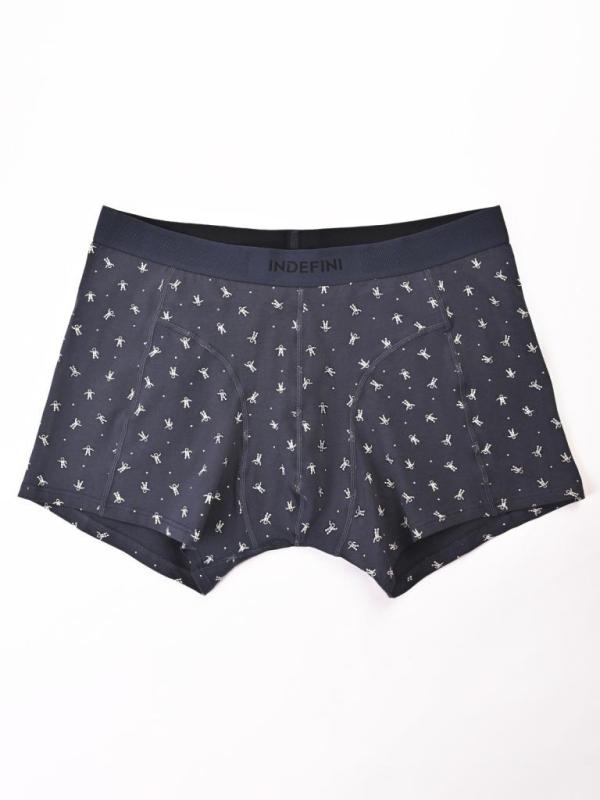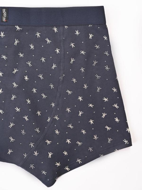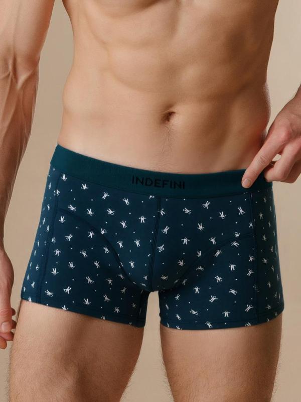 Мужские трусы из хлопка и эластана. Эластичная лента с логотипом INDEFINI надежно сидит на талии и поддерживает. Привлекательный вид трусам боксерам придает узор в виде маленьких белых кораблей на темно-синем фоне. Белье станет отличным дополнением к гардеробу, обеспечивая комфорт и удобство в любой ситуации.