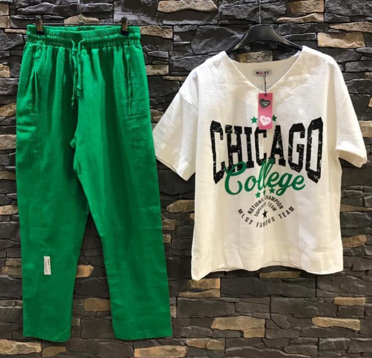 размер 42-44 майка- длина - 63 см, по линии груди от подмышки до подмышки 55 см, брюки - длина по внешнему шву -97 см, длина по внутреннему шву - 67 см, бедра до 90 см в объеме, талия до 86 см в объеме, пояс на резинке