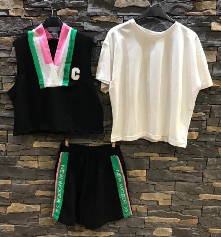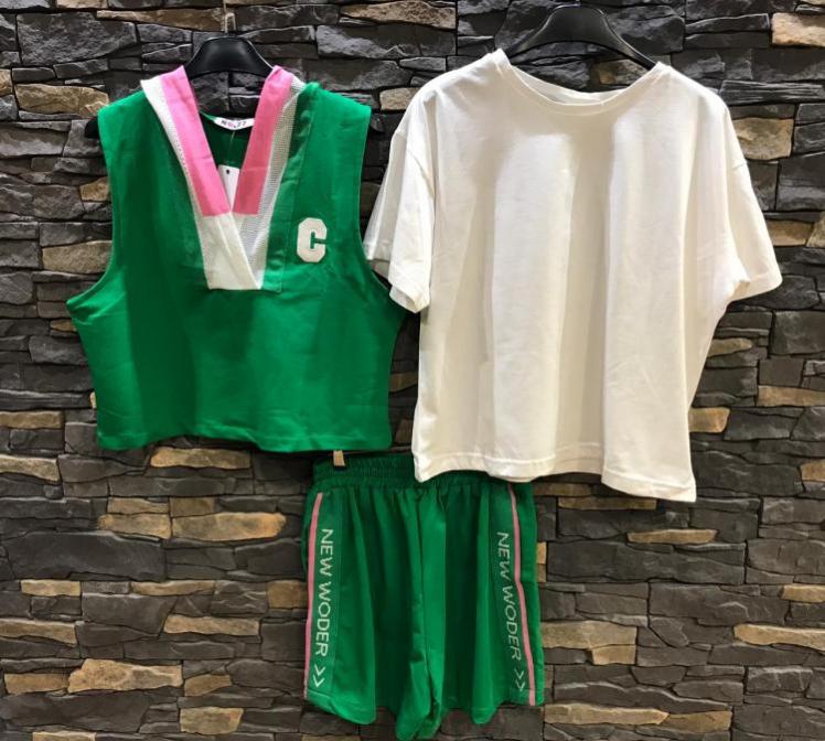 р. 2XL50 - длина майки - 67 см, по линии груди от подмышки до подмышки - 49,5 см, шорты длина по внешнему шву - 37 см, бедра в объеме до 102 см, талия в объеме до 102 см, пояс на резинке//