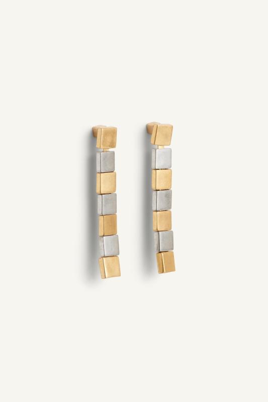 Висячие серьги с квадратными металлическими бусинами в форме кубиков. Закройте гайкой.