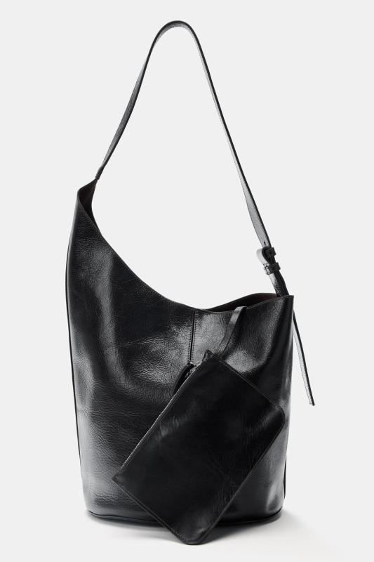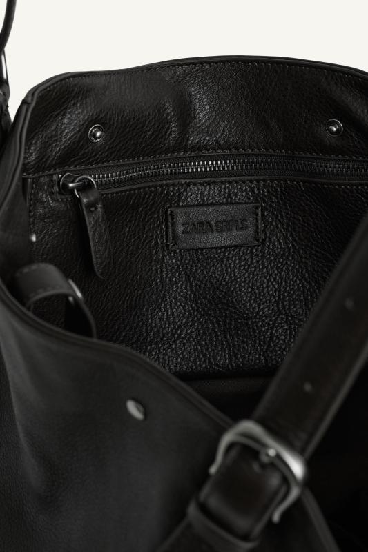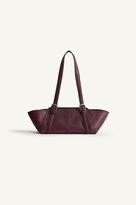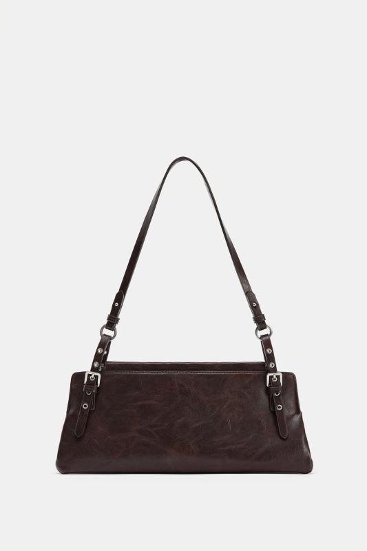 Удлиненная сумка через плечо из кожи. Двойная наплечная ручка с металлическими пряжками. Деталь стежков на теле. Внутренний карман. Закройте на молнию.