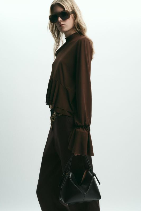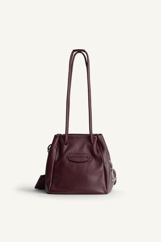 Сумка из натуральной кожи. Двойная наплечная ручка с металлическими аппликациями. Деталь с помощью стежка-строчки спереди. Внутренний карман. Магнитная застежка.
