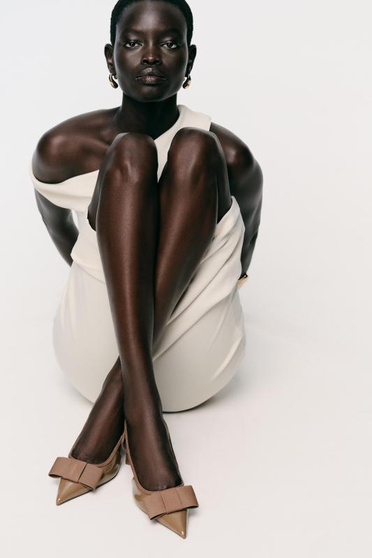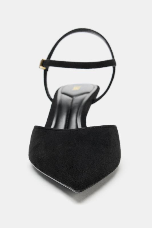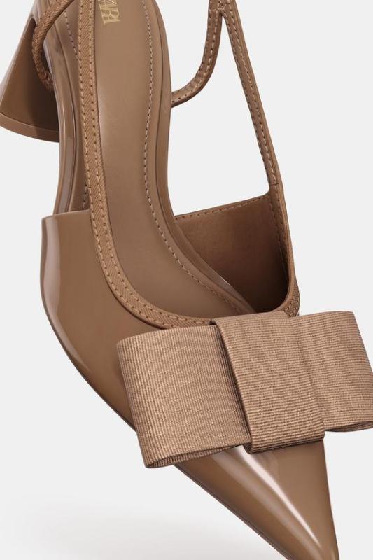 Обувь без каблука на каблуке из кожи. Задняя полоска с регулируемой эластичной деталью. Котенок на среднем каблуке. Остроконечная отделка.