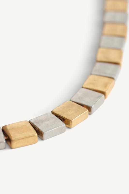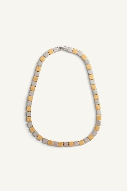 Ожерелье с металлическими бусинами в виде кубиков. Защелкивающаяся складная застежка.
