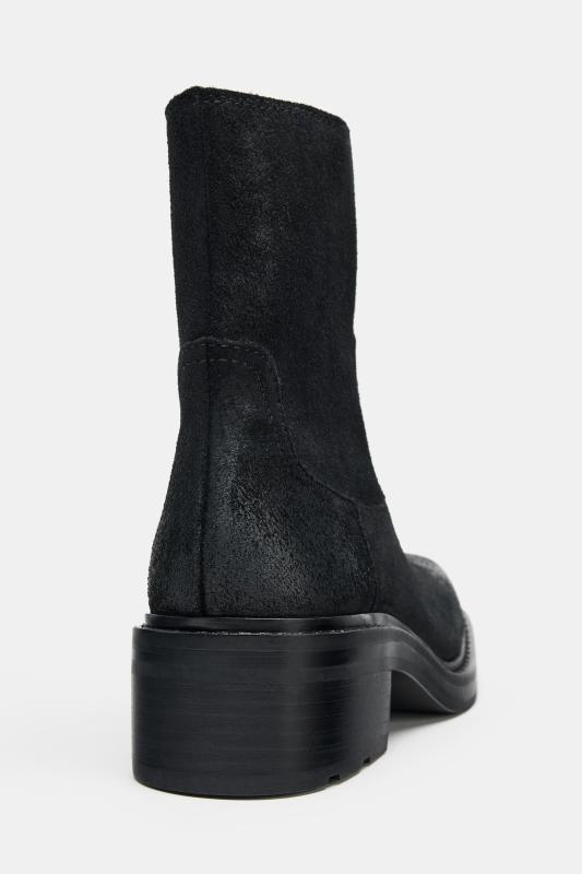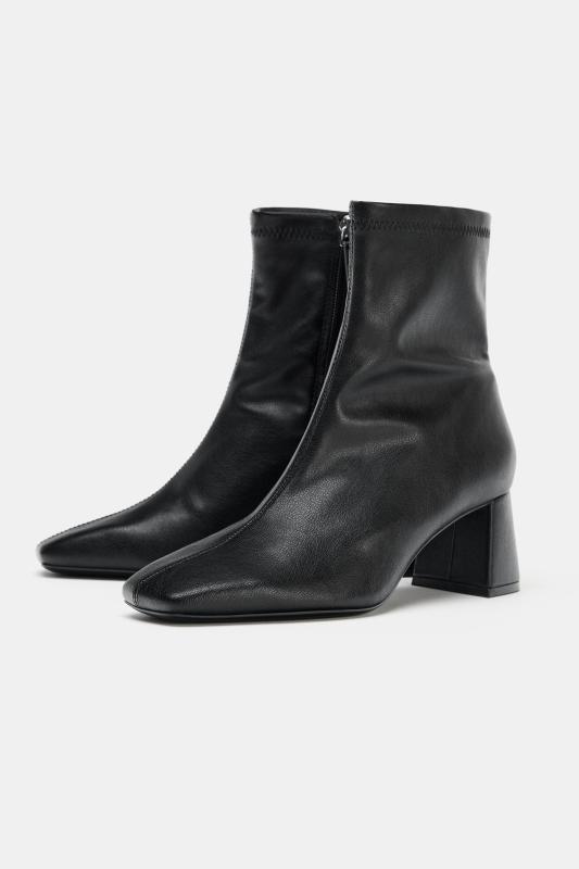 Обувь типа ботинок с зазубринами. Деталь с обратной строчкой на корпусе. Средний каблук. Застегните на внутреннюю молнию. Остроконечная отделка.