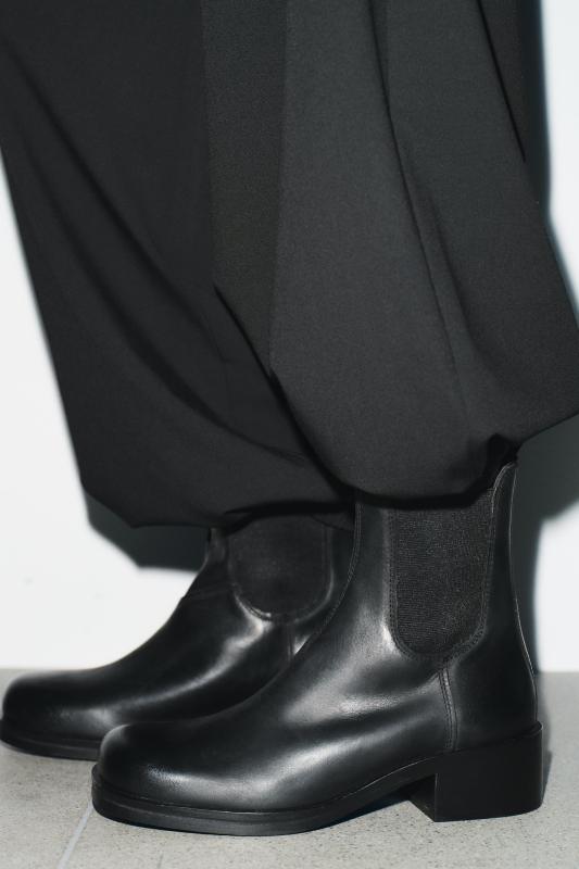 Ботинок ботильонного типа с зазубринами, деталь с обратной строчкой на разрезе. Боковые резинки. Задний стрелок. Остроконечная отделка. Закройте на молнию.