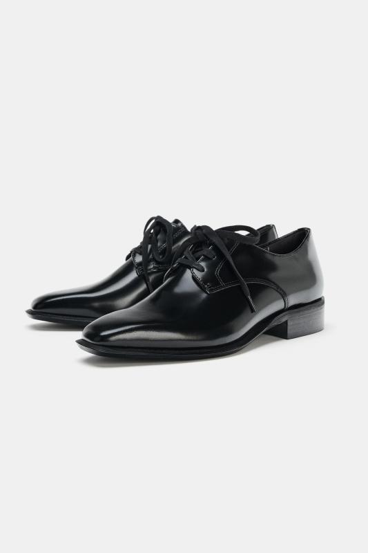 Туфли балерины на плоской подошве из кожи. Ремешок с регулируемой металлической пряжкой спереди. Контрастная строчка с изнаночной стороны. Квадратный вырез. Отделка с круглым носком.