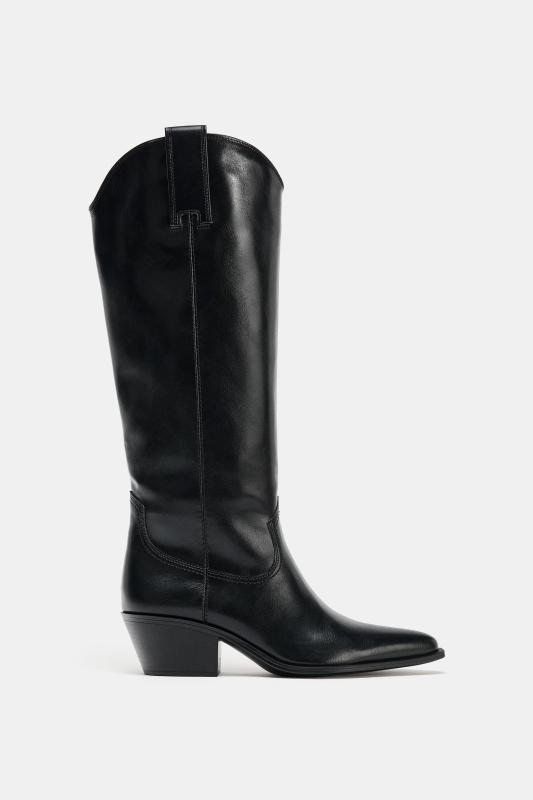 Обувь в ковбойском стиле. Деталь с обратной строчкой на корпусе. Легко надевается с помощью pull on. Высокий тростник. Блочный низкий каблук. Остроконечная отделка.