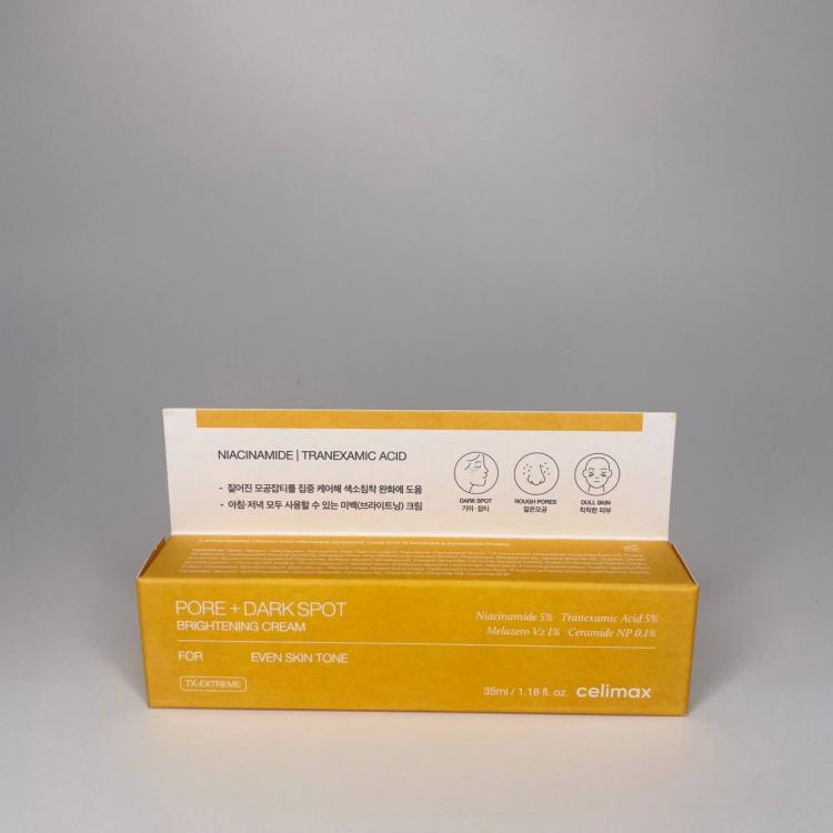 Крем для выравнивания тона и рельефа кожи Celimax Pore+Dark Spot Brightening Cream борется с пигментацией, сужает расширенные поры, придаёт гладкость и здоровое сияние. Осветляет веснушки, постакне и пигментные пятна, вызванные ультрафиолетом.