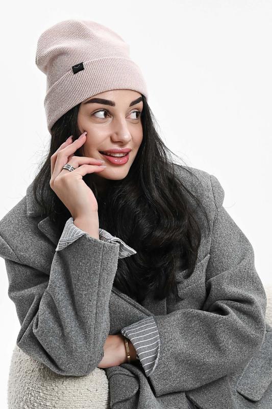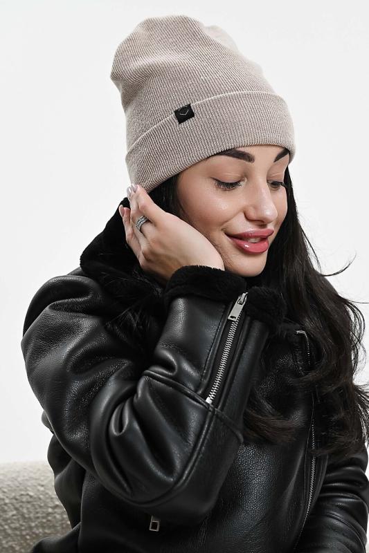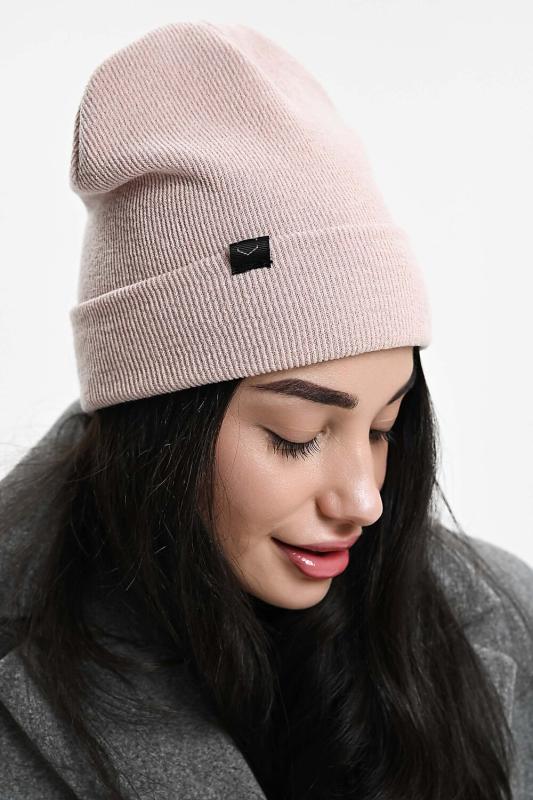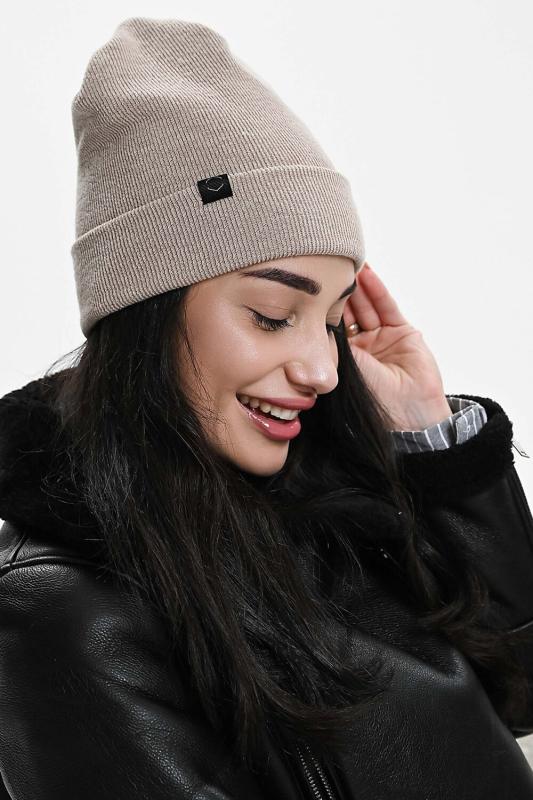 Шапка теплая в рубчик с нашивкой, двусторонняя. Длина изделия в развернутом виде - 31 см.