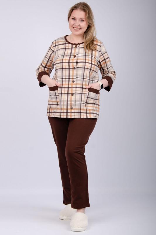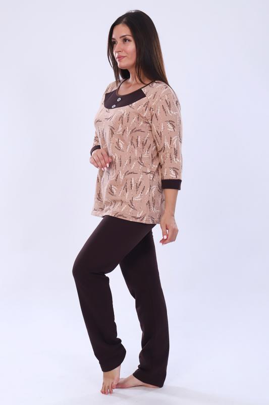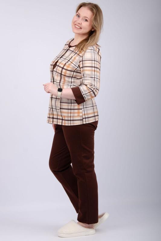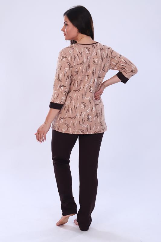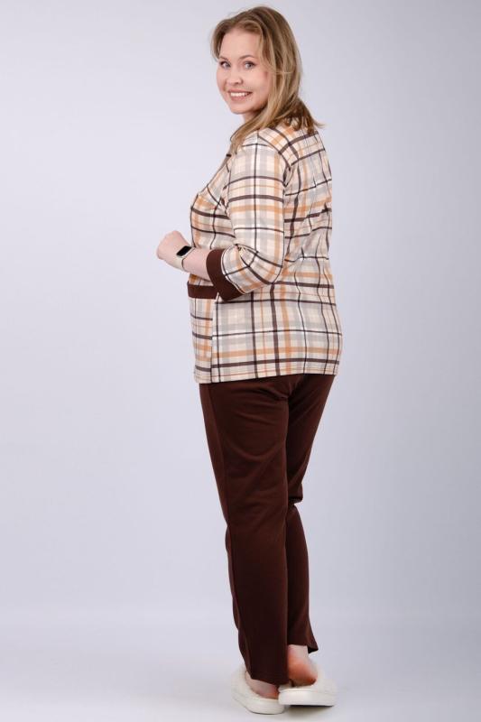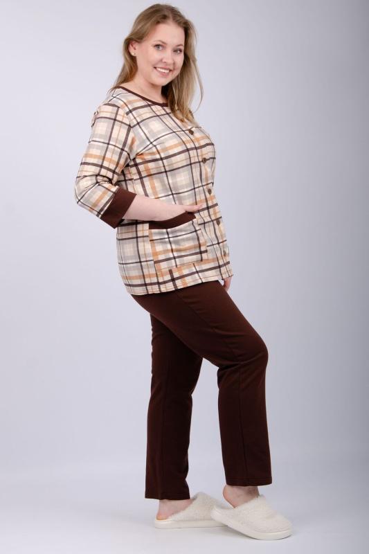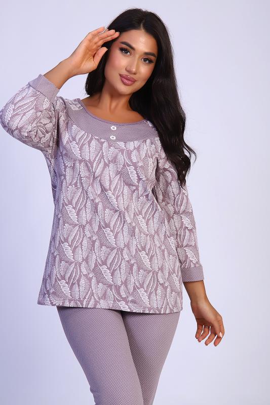 Теплая пижама с длинными брюками, кофта полуприлегающего силуэта с рукавом 3-4. Брюки из футера петля, кофта из футера с начесом