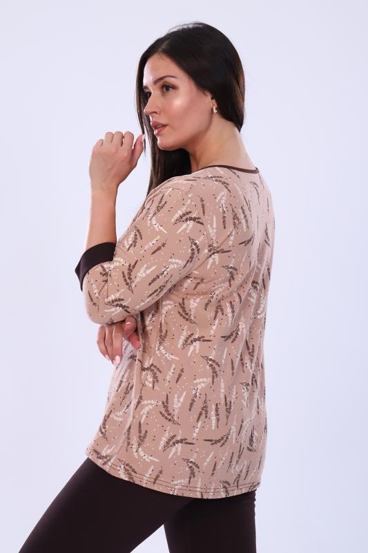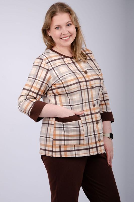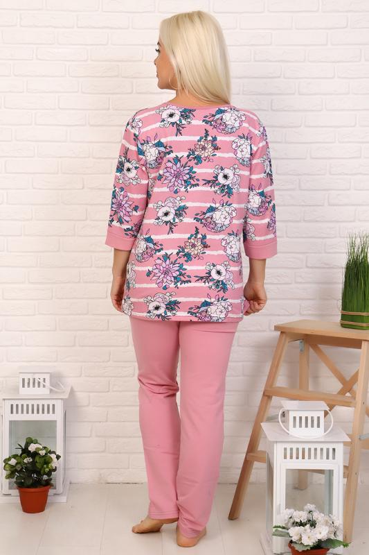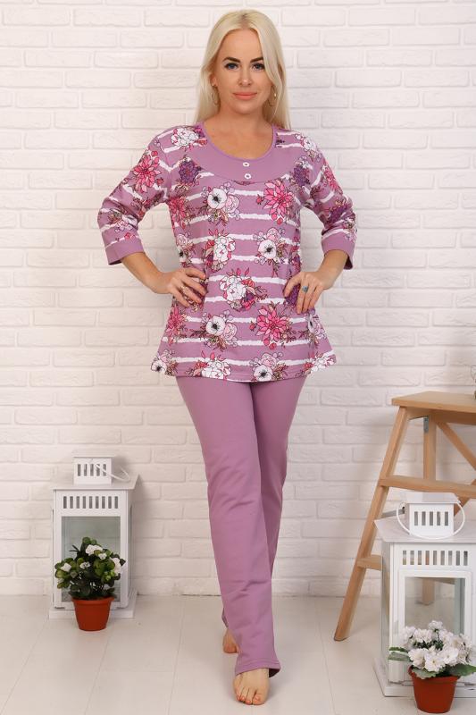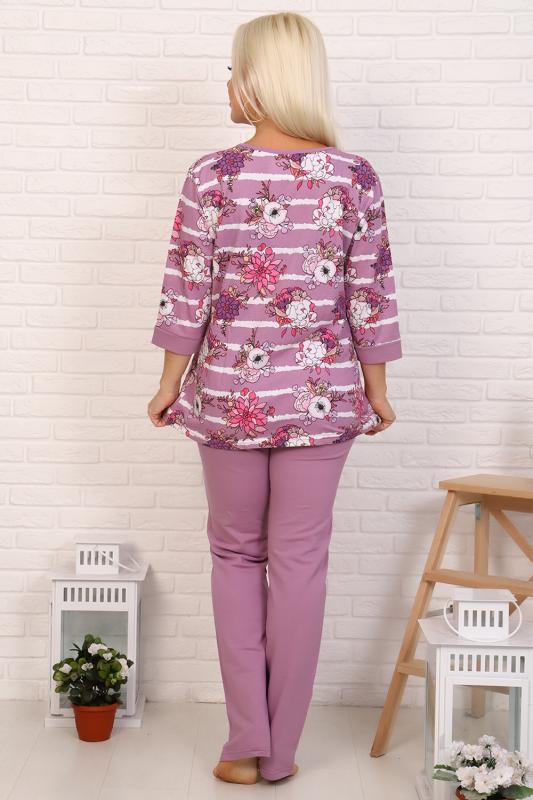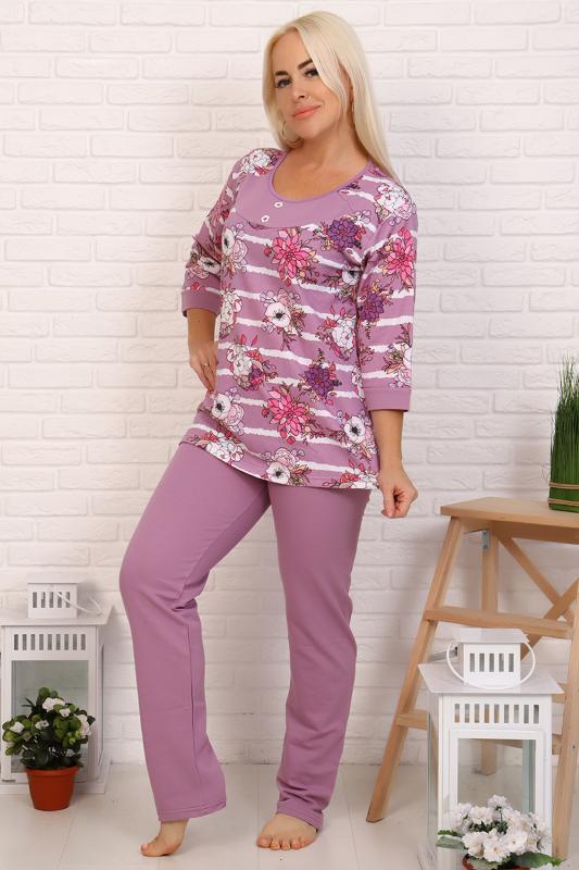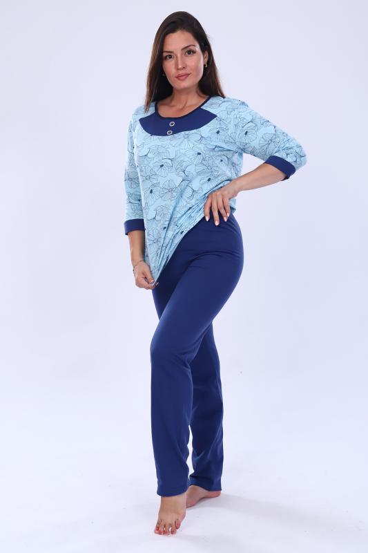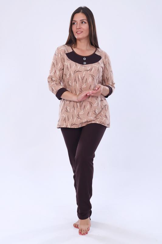 Теплая пижама с длинными брюками, кофта полуприлегающего силуэта с рукавом 3-4. Брюки из футера петля, кофта из футера с начесом