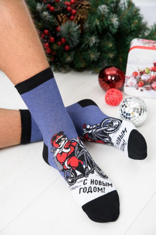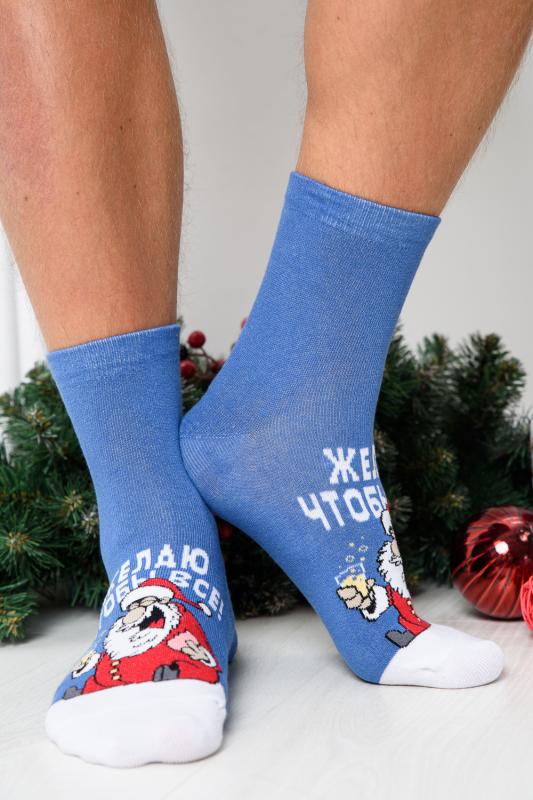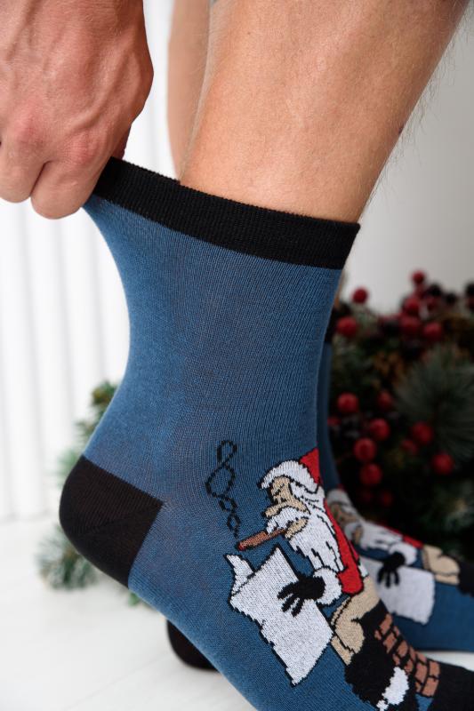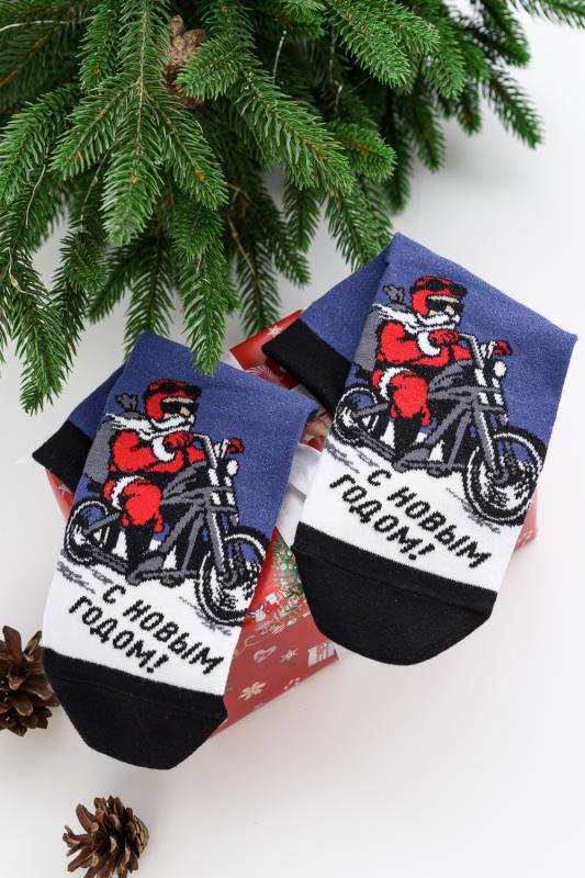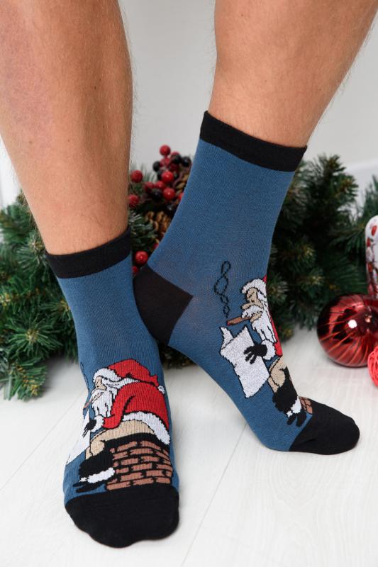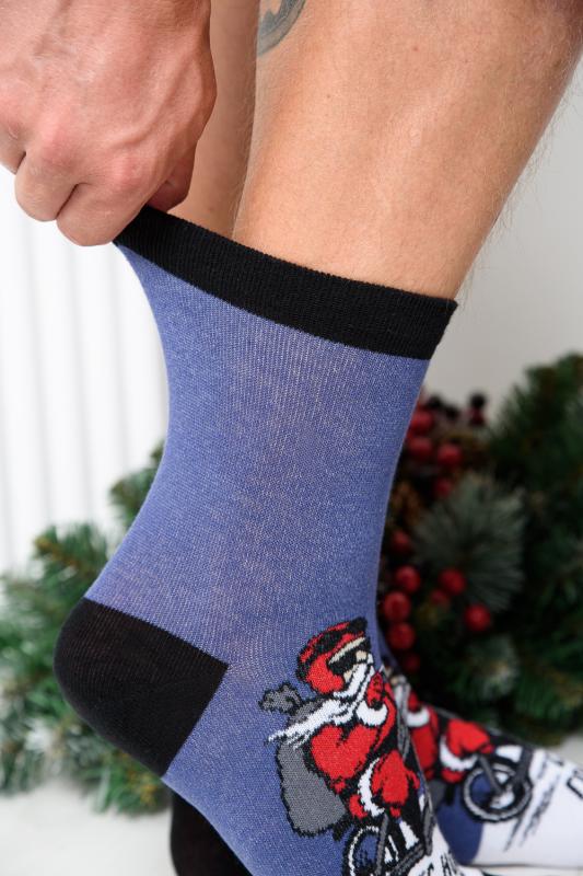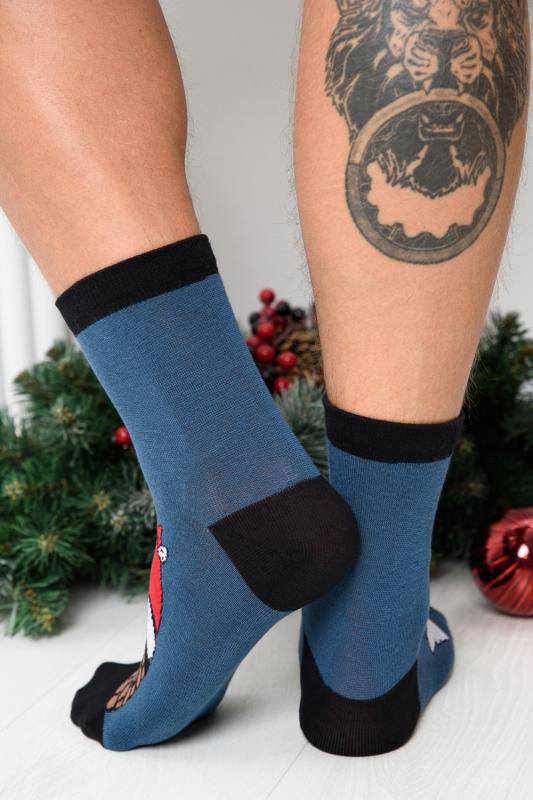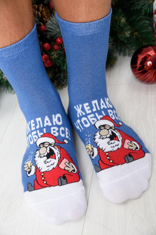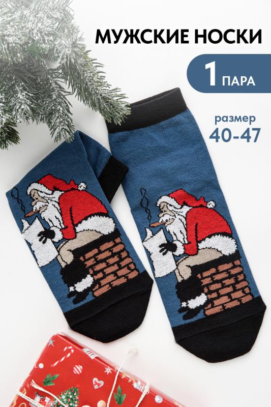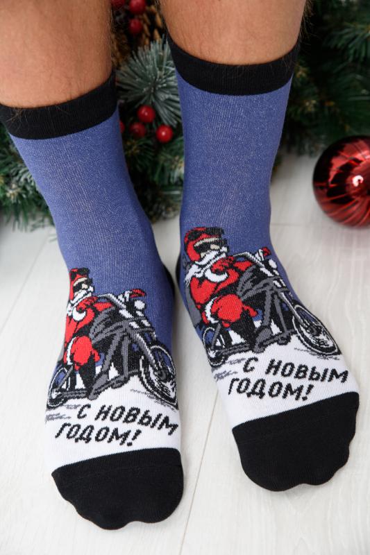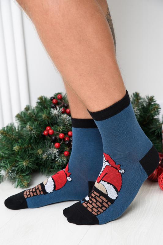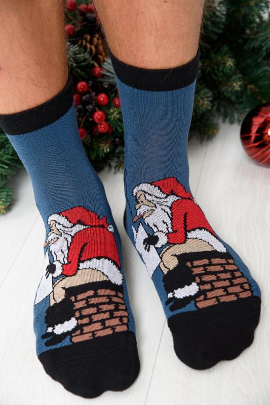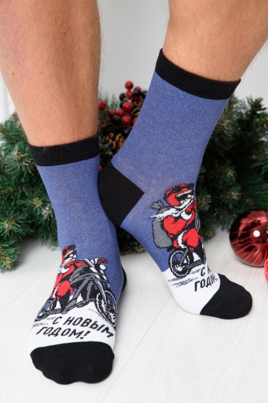 Оригинальные мужские новогодние носки. В комплекте 1 пара. На основной части носка изображение Санта Клауса и надпись "