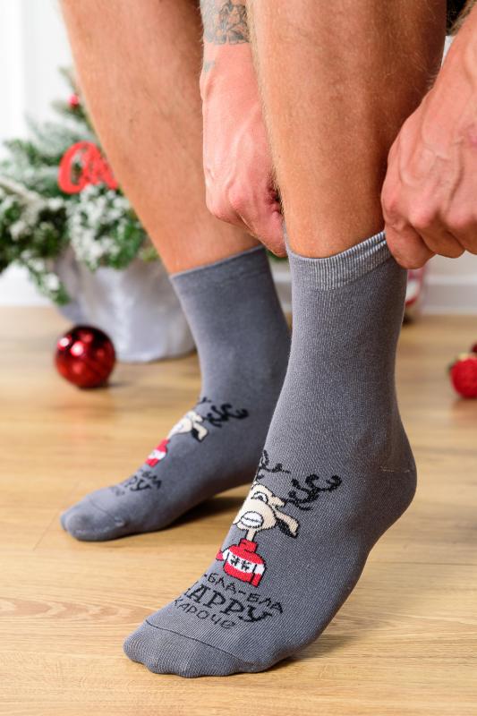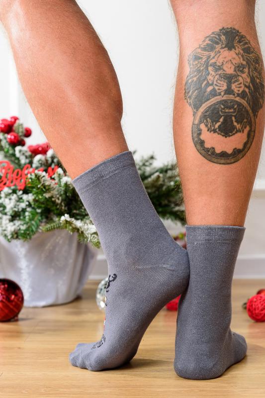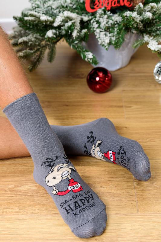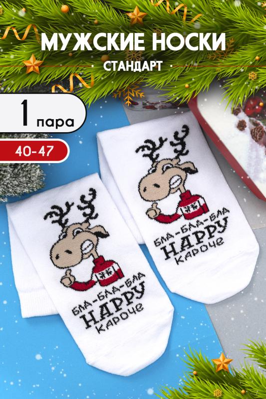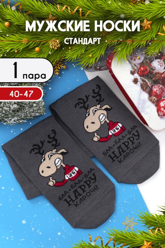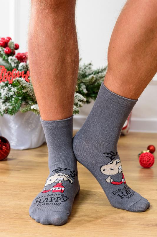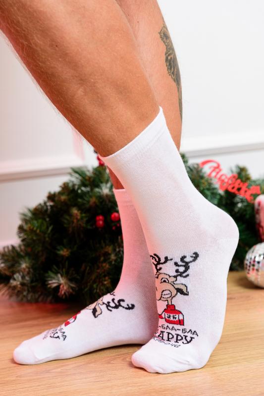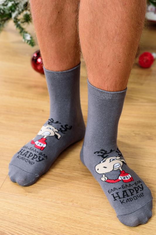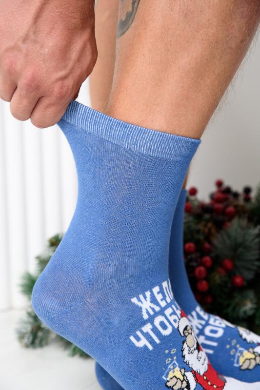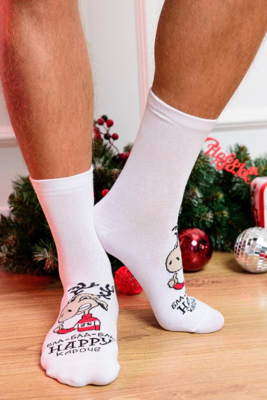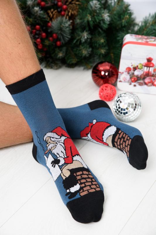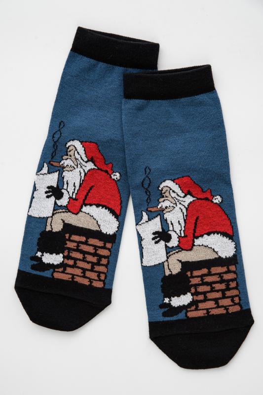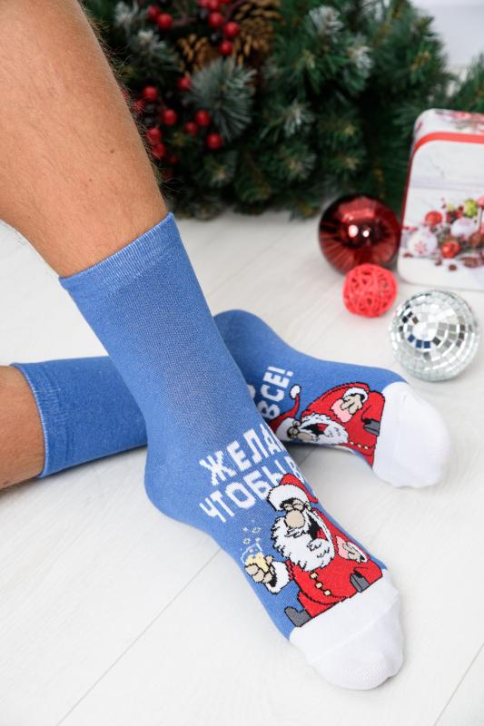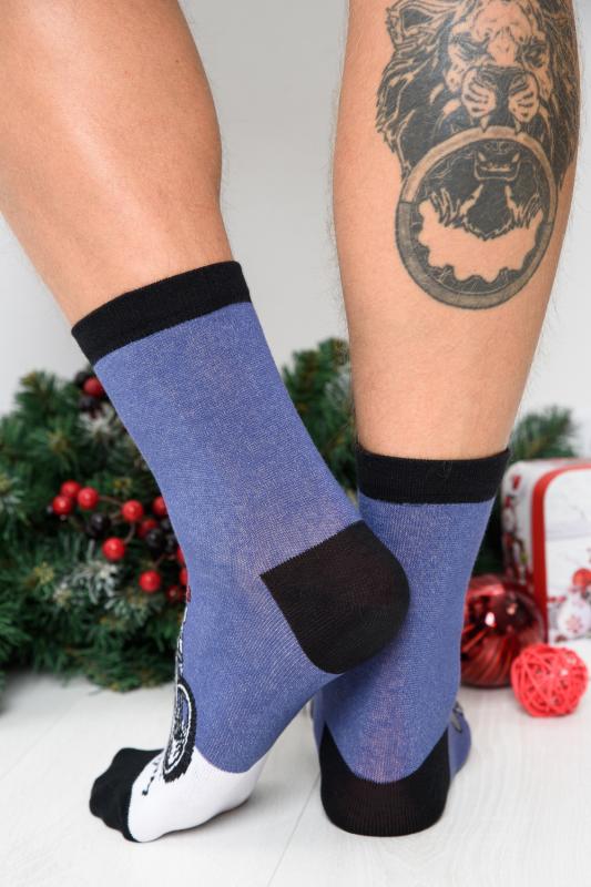 Оригинальные мужские новогодние носки. В комплекте 1 пара. На основной части носка изображение Санта Клауса и надпись "