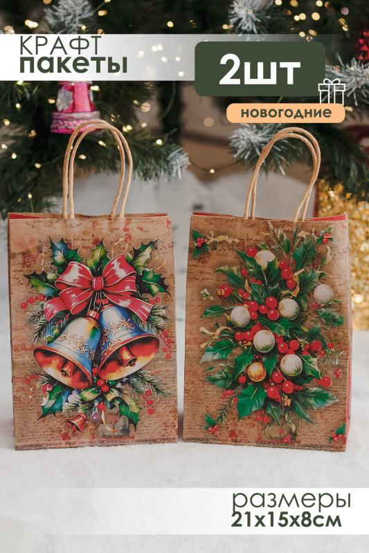 Набор из 2шт новогодних крафт-пакетов размером 21×15×8 см — стильная и практичная упаковка для праздничных подарков. Пакеты выполнены из плотной крафт-бумаги и аккуратными бумажными ручками, украшены атмосферным новогодним принтом (елочки, снежинки, гирлянды), что делает их готовыми к использованию для новогоднего подарка. Каждый пакет выдерживает небольшие наборы и сувениры (например, косметику, сладости, свечи, аксессуары), прекрасно смотрится с бумажной стружкой или крафт-этикеткой и отлично подходит для корпоративных подарков, подарочных наборов, праздников и ярмарок. Экологичный материал биоразлагаем и пригоден для вторичной переработки, хранить пакеты лучше в сухом помещении, избегая длительной влажности.