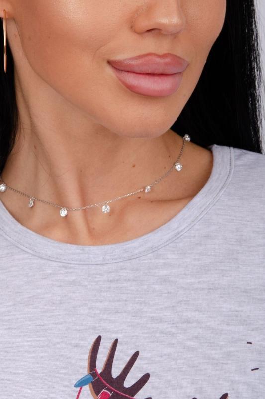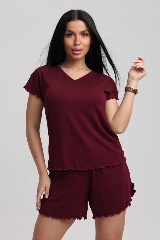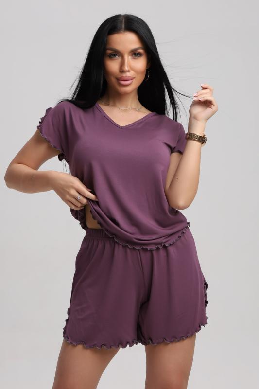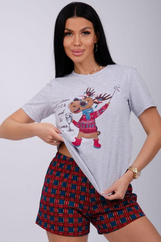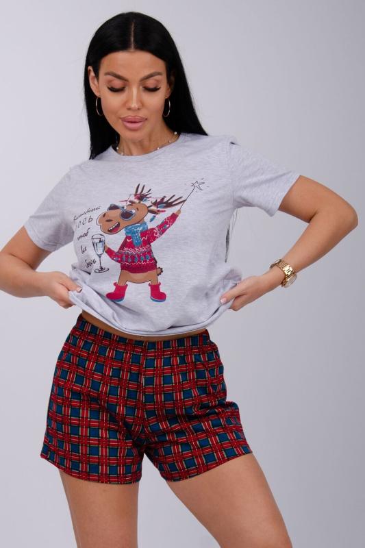 Пижама женская состоит из футболки с коротким рукавом и шортов. Футболка из однотонной кулирки с красивым принтом, шорты свободного покроя из ткани кулирка.