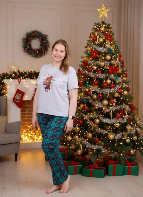 Пижама женская со штанами изготовлена из мягкой ткани (100 % хлопка), которая обладает дышащими и влаговпитывающими свойствами, идеально подходит для сна, обеспечивает максимальную практичность и воздухопроницаемость, облегчая сон даже в самые жаркие и холодные ночи. Женский домашний костюм состоит из стильной тонкой ночной футболки с коротким рукавом и легких брюк, которые создают комфортный домашний уют дома. Милая женская пижамка украшена стильным принтом. Пижама женская яркая и в тоже время нежная, идеальна для беременных, будущих мам или в роддом, ведь в этой пижаме для беременных удобно весь день. Носить можно в любое время года: ос