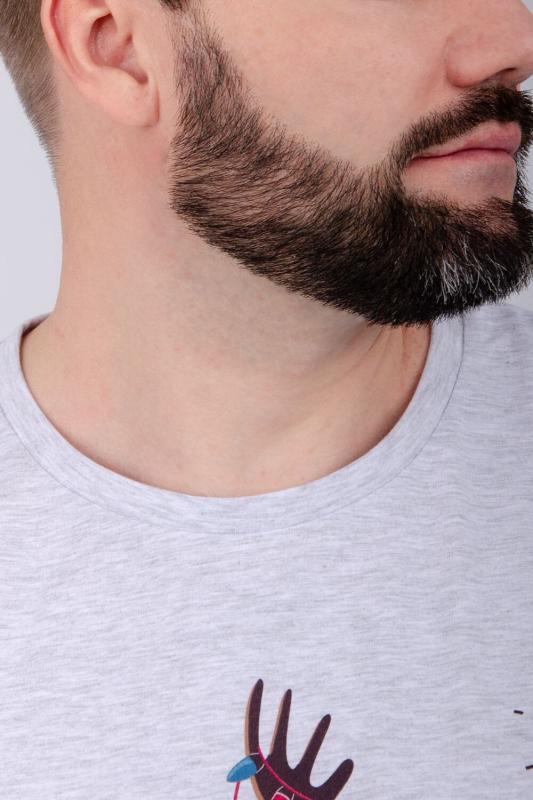 Пижама мужская: футболка прямого кроя с короткими рукавами с принтом на полочке, брюки прямые, с карманами в боковых швах.