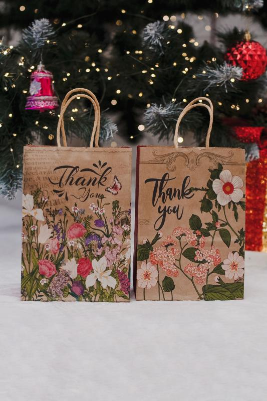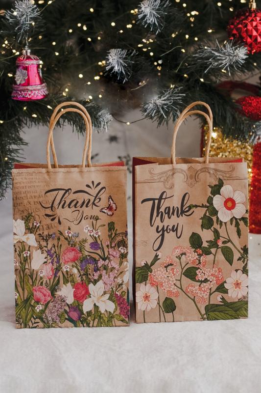 Набор из 2шт крафт-пакетов размером 21×15×8 см — стильная и практичная упаковка для праздничных подарков. Пакеты выполнены из плотной крафт-бумаги и аккуратными бумажными ручками, украшены цветочным принтом и надписью "