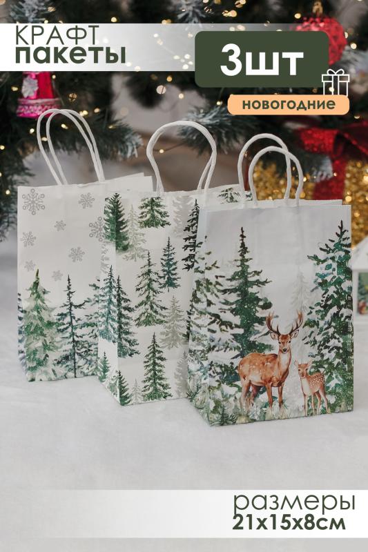 Набор из 3 новогодних крафт-пакетов размером 21×15×8 см — стильная и практичная упаковка для праздничных подарков. Пакеты выполнены из плотной крафт-бумаги и аккуратными бумажными ручками, украшены атмосферным новогодним принтом (елочки, снежинки, гирлянды), что делает их готовыми к использованию для новогоднего подарка. Каждый пакет выдерживает небольшие наборы и сувениры (например, косметику, сладости, свечи, аксессуары), прекрасно смотрится с бумажной стружкой или крафт-этикеткой и отлично подходит для корпоративных подарков, подарочных наборов, праздников и ярмарок. Экологичный материал биоразлагаем и пригоден для вторичной переработки, хранить пакеты лучше в сухом помещении, избегая длительной влажности.