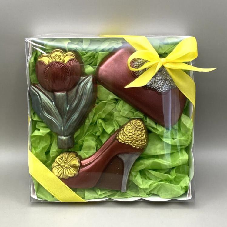 Фигурный шоколад станет креативным подарком для женщины. Вкусная, натуральная сладость полностью имитирует изделие и покрыта сверкающим пищевым лаком. Попробуйте этот шоколад на вкус – и вы не оторветесь.