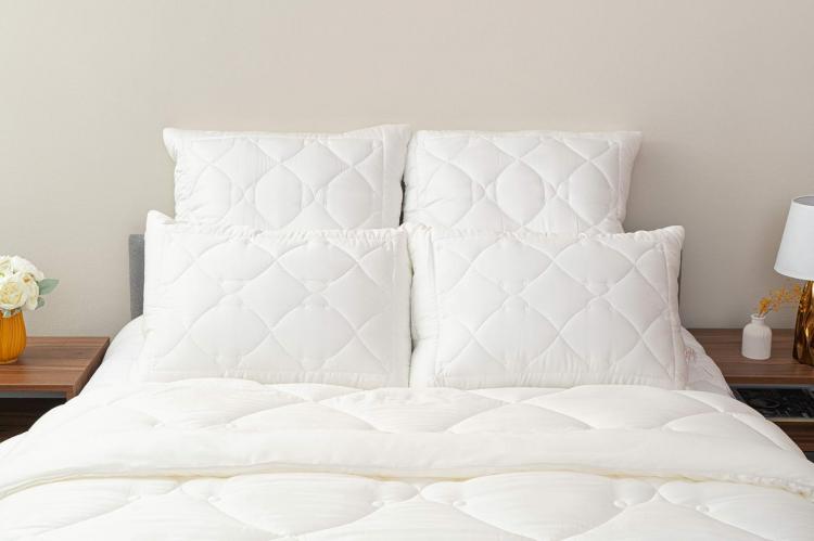Состав наполнителя в чехле: 60% шерсть кашмирской козы, 20% искусственный лебяжий пух, 20% силиконизированное волокно