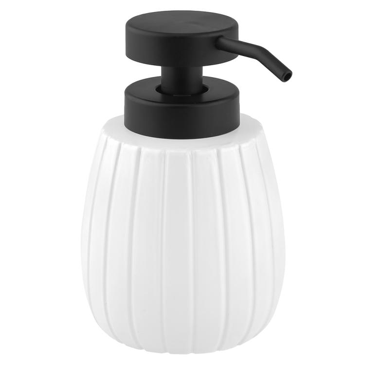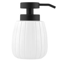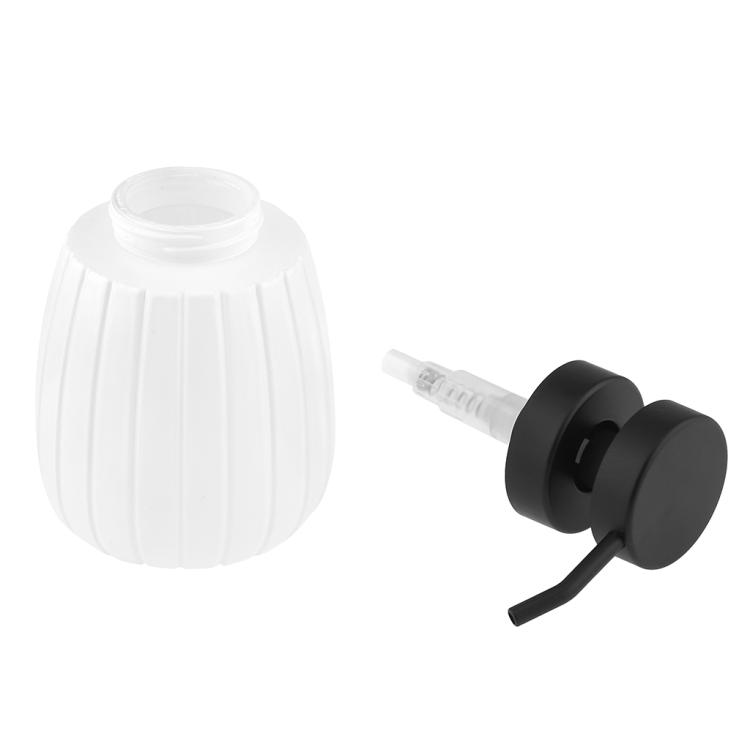Дозатор для жидкого мыла стеклянный "Бочонок" 430мл, д6,8см, h14,2см, основание д7см, фурнитура пластик черный, окрашенный, белый, в коробке (Китай)